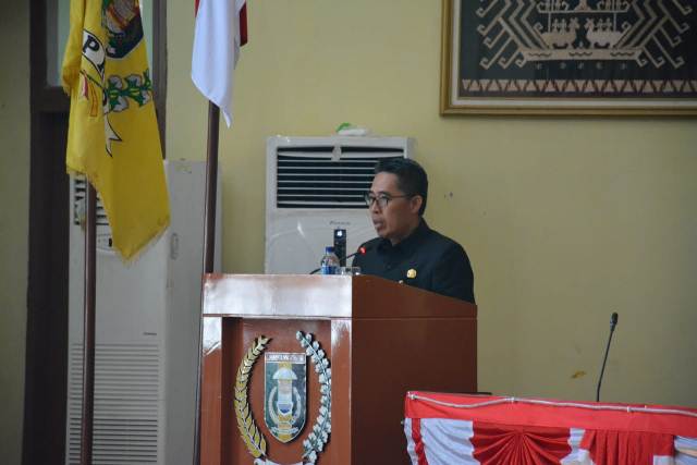 RAKYATNEWS.CO.ID, SUKADANA – Wakil Bupati Lampung Timur, Zaiful Bokhari dalam kapasitasnya mewakili Bupati Lampung Timur, Chusnunia Chalim memberikan jawaban atas Pemandangan Umum Fraksi-Fraksi terhadap Penyampaian Tujuh Raperda Kabupaten Lampung Timur pada Rapat Paripurna TK I DPRD Kabupaten Lampung Timur yang digelar di Ruang Sidang DPRD Kabupaten Lampung Timur, Selasa, (16/10/2018).