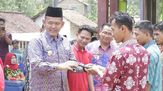 Penyerahan bantuan alat masing-masing berupa mesin molen pencetak batu bata, spinner dan siller secara simbolis dilakukan oleh Wakil Bupati Pringsewu Dr.Hi.Fauzi, S.E., M.Kom., Akt., C.A. kepada masing-masing perwakilan IKM di halaman Masjid Nurul Huda, Pekon Bumiarum, Kamis (1/11).
