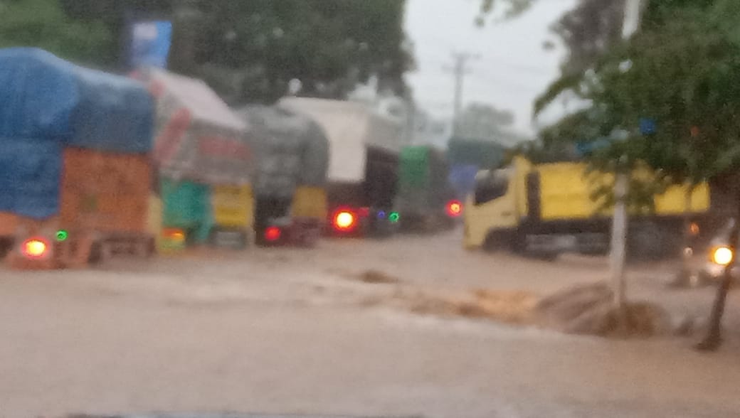 Gambaran banjir yang menggenangi jalan transumatra hingga menyebabkan antrian kendaraan di Desa Palembapang tersebut, telah diunggah warga setempat di media sosial facebook.
