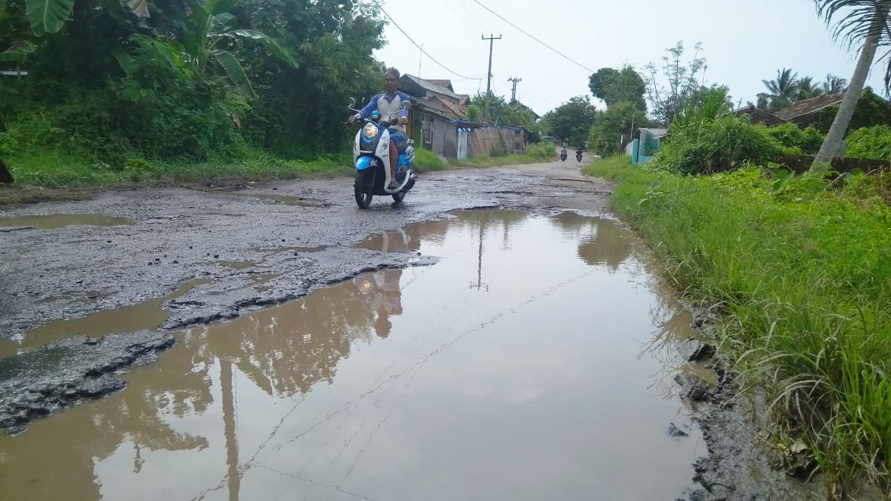 RAKYATNEWS.CO.ID,KALIANDA – Jalan Provinsi di sepanjang pesisir pantai yang menghubungkan dua kecamatan di Lampung Selatan, yakni Kecamatam Pengahan dan Kecamatan Rajabasa, kondisinya rusak sehingga sudah tak nyaman lagi dilalui pengguna jalan. Kondisi jalan rusak semakin parah dan berbahaya jika hujan turun. Meski sering kali dikeluhkan masyarakat, namun jalan utama yang melintasi banyak wisata pantai di Lamsel itu tak kunjung di perbaiki pemerintah. Selain dikeluhkan masyarakat, sejumlah warga juga pernah melakukan aksi dengan menanami pohon pisang di beberapa ruas jalan yang berlubang. Akan tetapi, aksi protes warga tak juga digubris pemerintah sehingga jalan hingga berita ini ditulis belum juga diperbaiki. Penelusuran media ini yang dilakukan setelah hujan turun, pada Jumat (14/12) sore, mendapati sebanyak sepuluh desa di dua kecamatan yang kondisinya rusak parah dan berlubang. Akibat itu, untuk melalui jalan yang berlubang dan tergenang air itu harus ekstra hati-hati agar pengguna jalan tak alami kecelakaan. Sedangkan, sepuluh desa yang banyak mengalami rusak dan berlubang itu, berada di Desa Maja, Canti, Rajabasa, Ujau, Sukaraja, Kunjir, Batu Balak, Hargopancuran, semanak, dan Tanjung Heran.