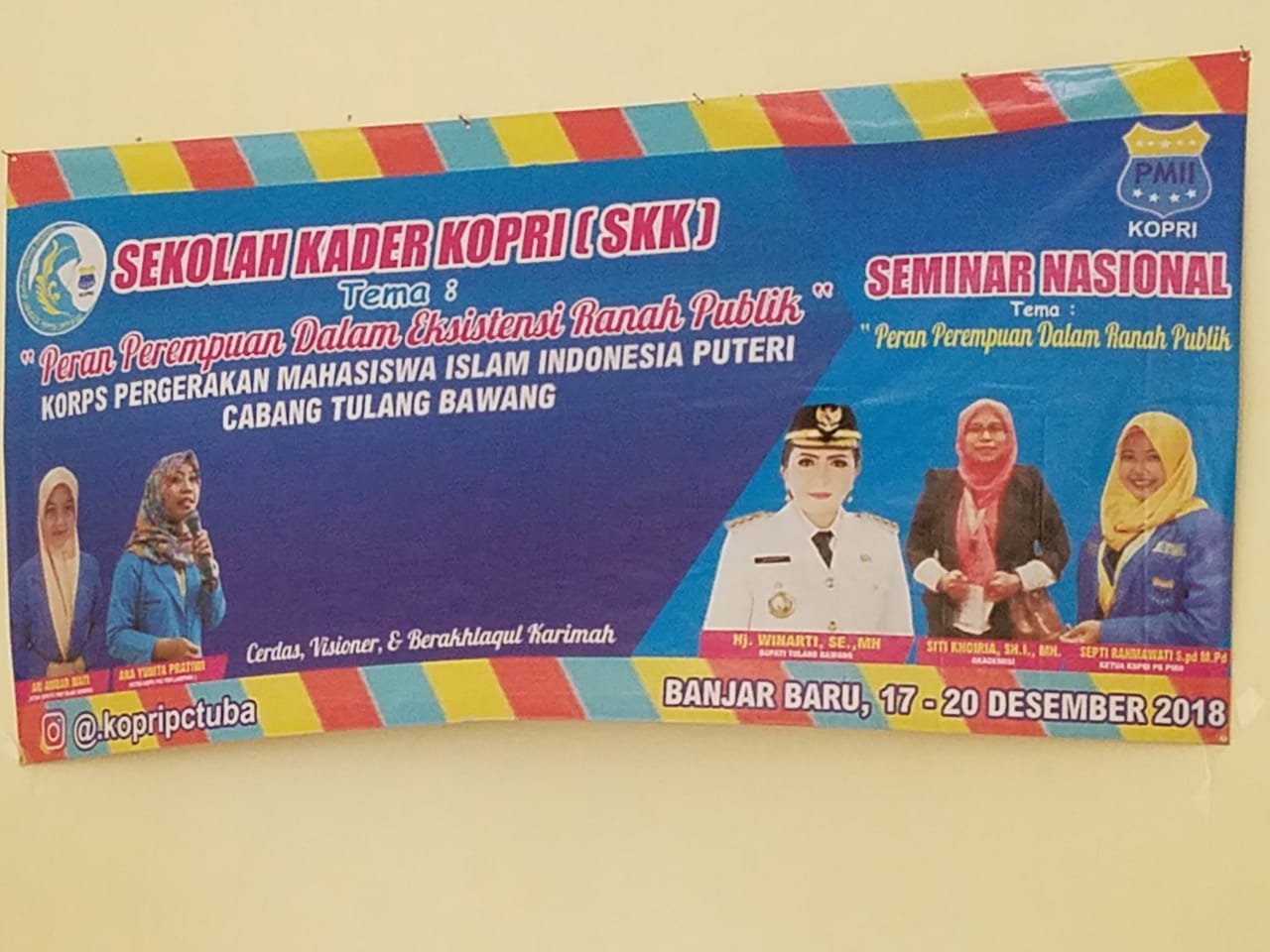 Dibuat dan disampaikan pada Seminar Nasional dan Sekolah Kader Kopri (SKK) yang diselenggarakan oleh Pengurus Cabang Korps Pergerakan Mahasiswa Islam Indonesia Puteri, Hari Senin 17 Desember 2018, (Hj. WINARTI,SE, M.H) Bupati Kabupaten Tulang bawang Provinsi Lampung.