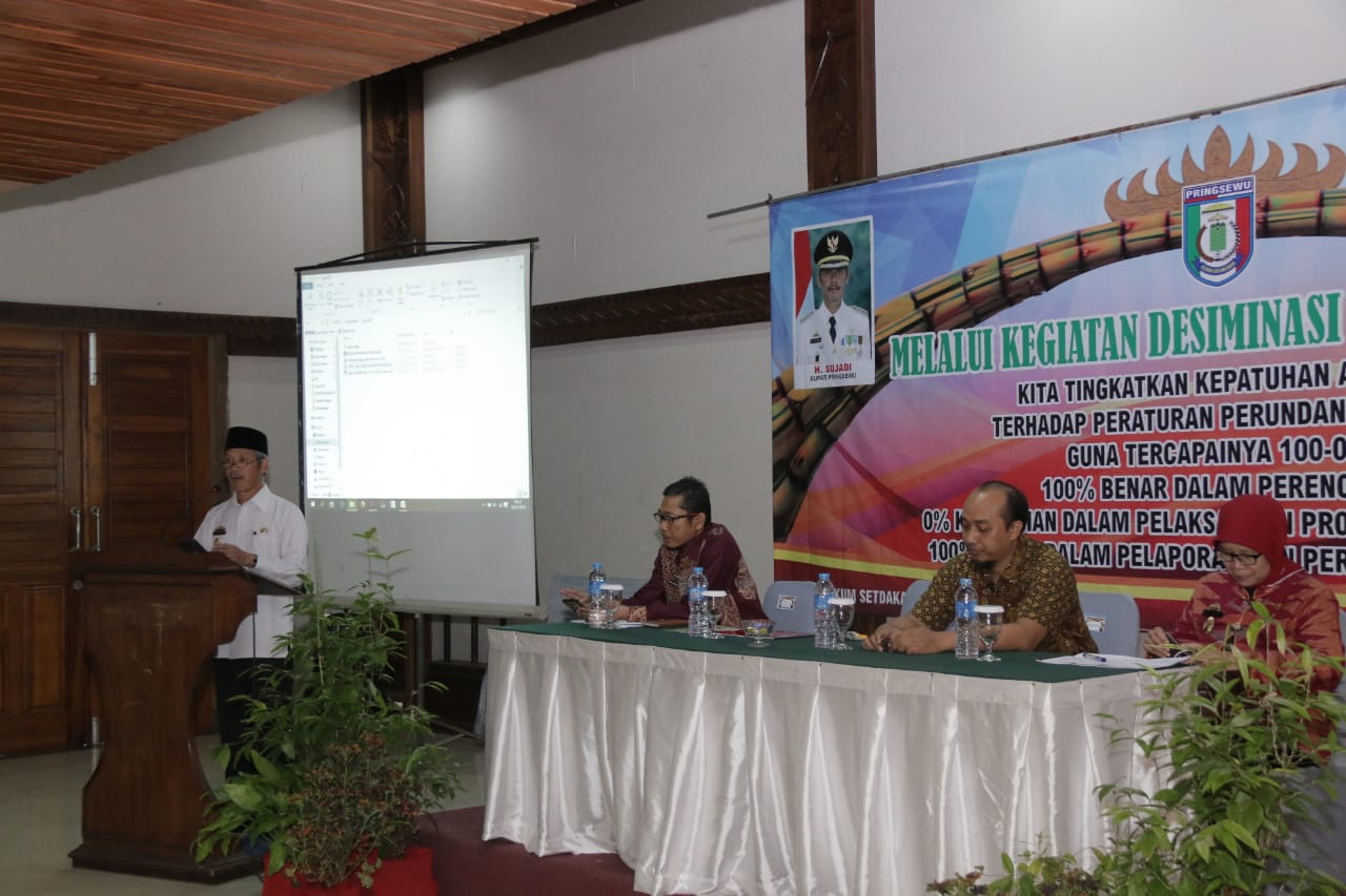 Sujadi didampingi Inspektur Endang Budiarti dan Kabag Hukum Ihsan Hendrawan berharap dengan kegiatan diseminasi produk hukum tersebut, setiap kepala OPD maupun bagian dapat mengetahui sekaligus meningkatkan kepatuhan terhadap peraturan perundang-undangan yang berlaku, dalam rangka terciptanya 100-0-100 di Kabupaten Pringsewu, yakni 100% benar dalam perencanaan sebuah program, 0% kesalahan, serta 100% benar dalam laporan pertanggung jawaban.