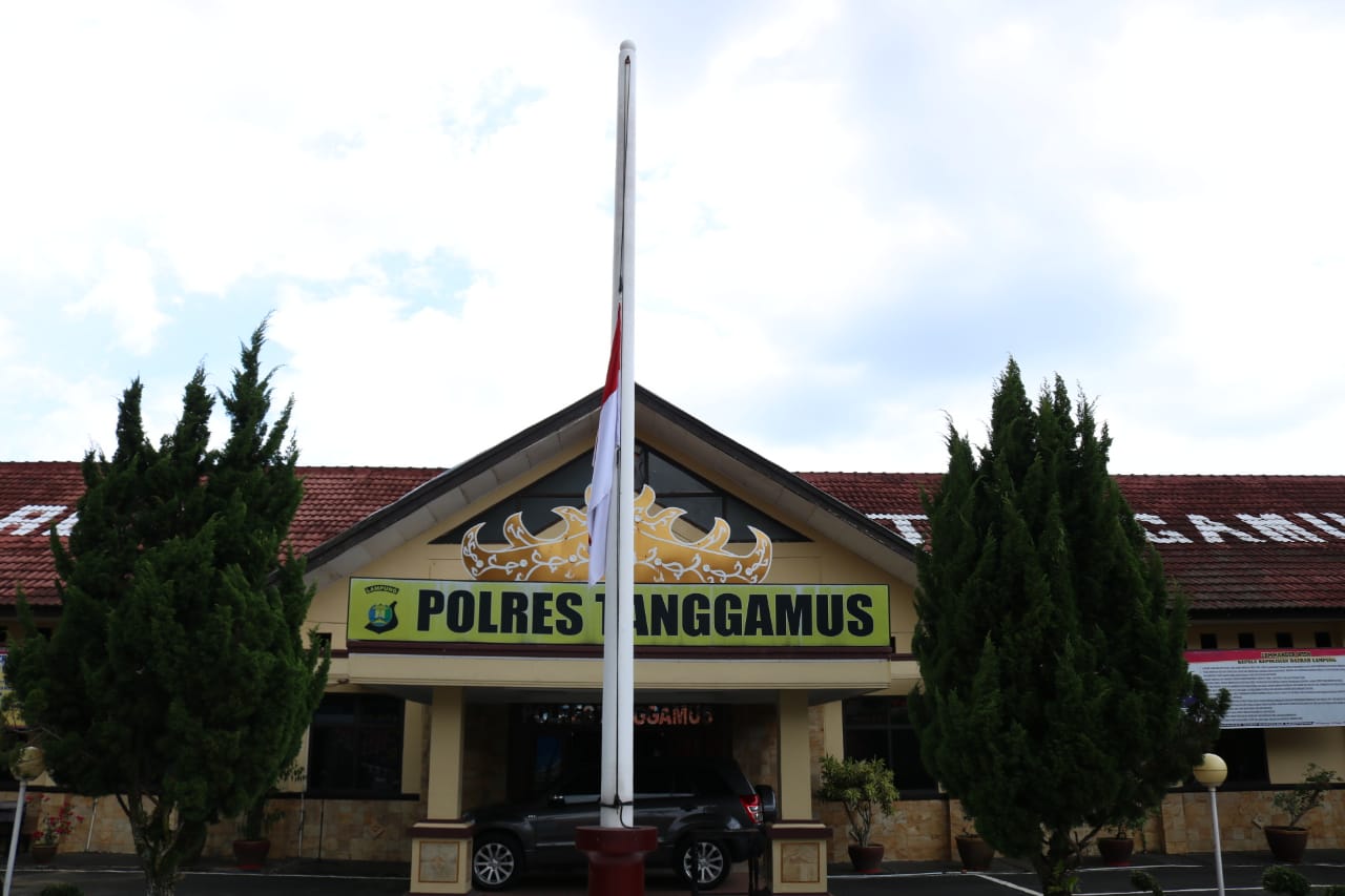 Selain melaksanakan sholat ghoib juga dilaksanakan pemasangan bendera setengah tiang sebagai rasa duka Polri khususnya Polres Tanggamus dan jajaran.