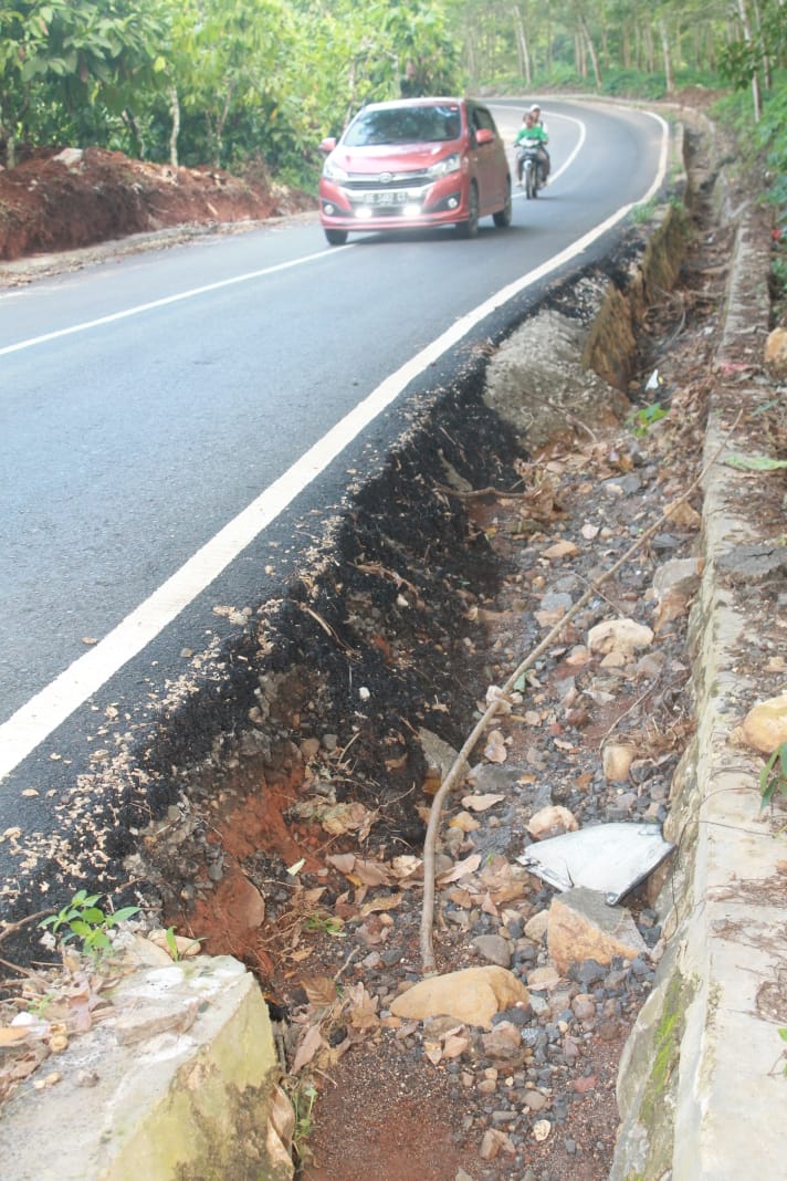 RAKYATNEWS. CO. ID, PESAWARAN – Proyek Infrastruktur di Kabupaten Pesawaran membuat warga kecewa, Pembangunan ruas Jalan Padang Cermin-Kedondong, Kabupaten Pesawaran dengan panjang jalan 29,5 km yang menghabiskan anggaran Rp160 miliyar dengan metode Rigid/beton dan hotmix, belum Genap Satu bulan PHO Sudah banyak kerusakan diantaranya talut penahan tanah sudah banyak yang ambrol dan Ini sangat dikeluhkan masyarakat karena akan membahayakan bagi pengguna yang akan melintasinya.