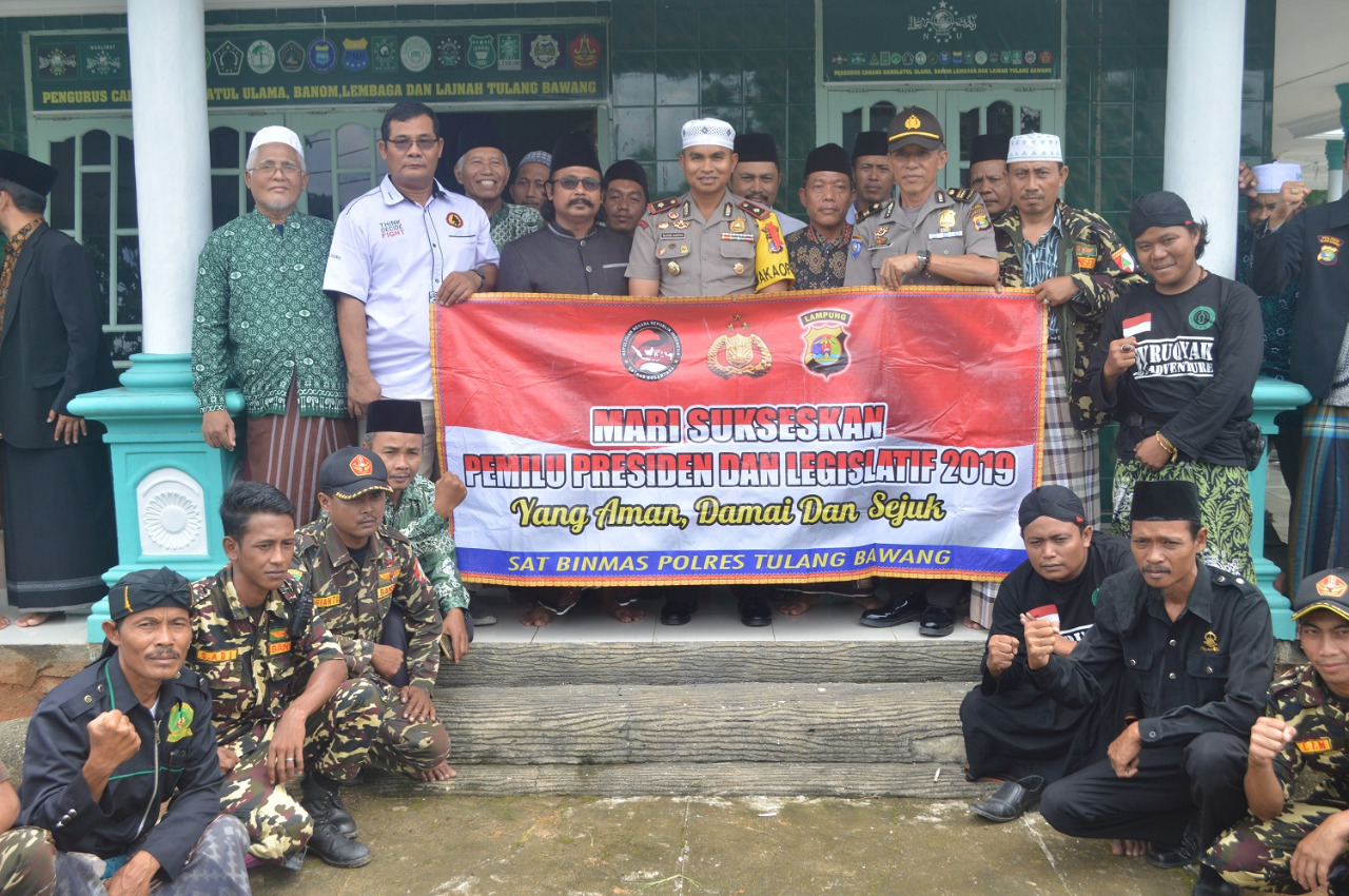 Saya juga mengajak seluruh warga NU untuk aktif membantu Polri khususnya Polres Tulang Bawang untuk menciptakan Pemilu (pemilihan umum) tahun 2019 yang aman, damai dan sejuk serta mencegah hoax.