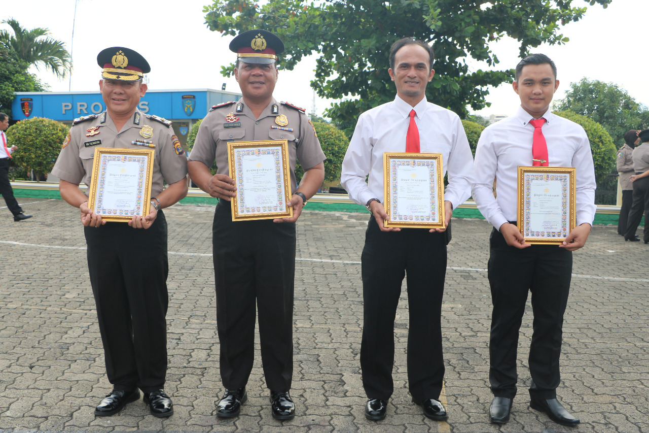 Penghargaan diserahkan diserahkan Wakapolda Lampung Brigjen Pol Teddy Minahasa Putra, SIK. MH dalam upacara kesadaran nasional Polda Lampung di Halaman Mapolda, Senin (18/2/19) pagi.