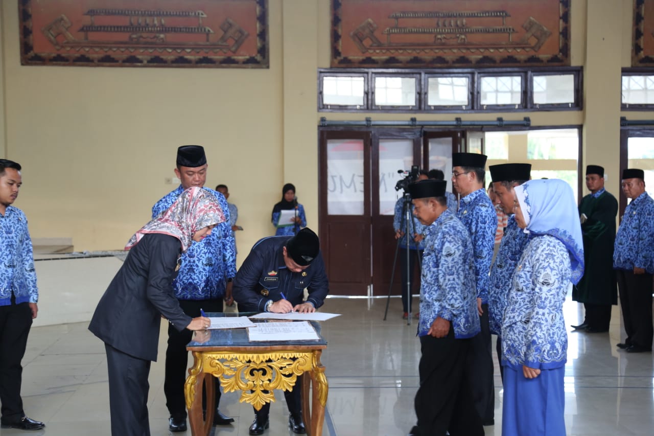 “saya mengucapkan selamat atas pergantian antar waktunya, bisa dijalankan dengan sebaik-baiknya dan memberikan yang terbaik untuk desa karena kalau mengitung pendapatan sebagai petugas desa mungkin tidak akan sepadan dengan apa yang akan bapak dan ibu berikan.”
