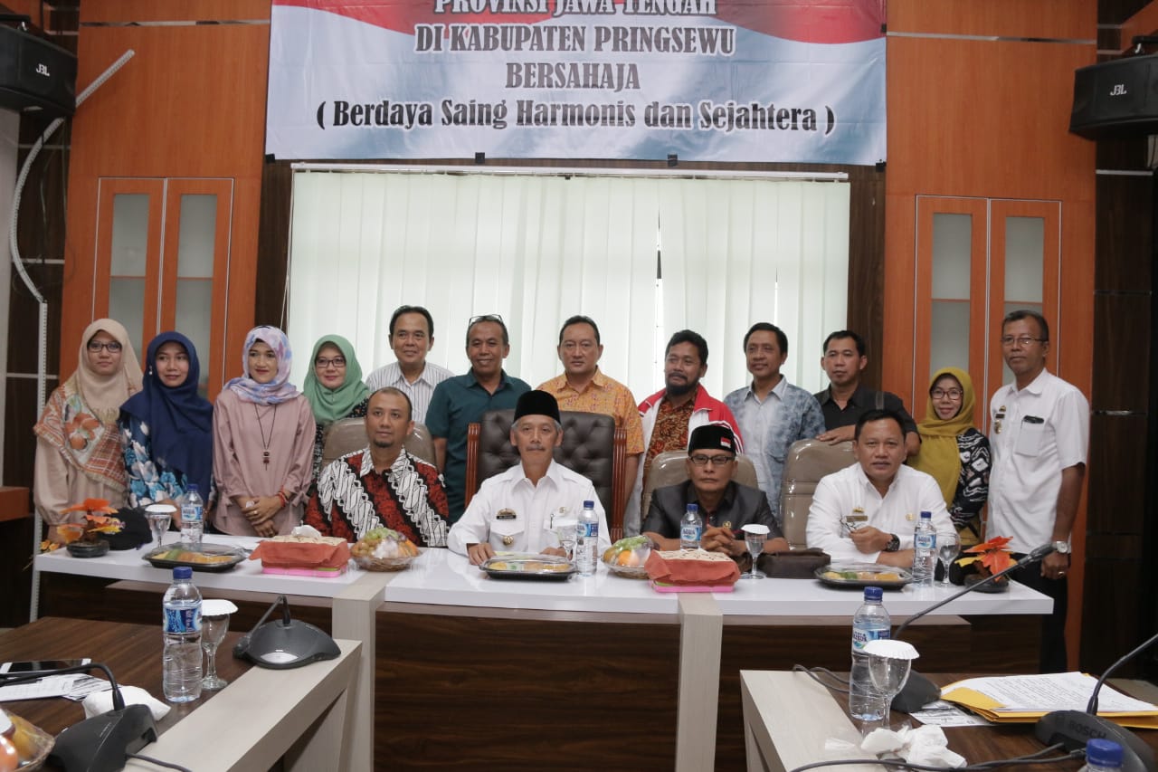 Rombongan sepuluh anggota Komisi D DPRD Kabupaten Semarang, yang terdiri dari Ketua Komisi D DPRD Kabupaten Semarang Resa Haribowo, S.T., Wakil Ketua Komisi Muzayinul Arif, S.Ag., Sekretaris Komisi Drs.Pujo Pramujito, dan beberapa anggota Komisi D diantaranya Wiranto, S.H., Hj.Yuriah, Dr.Hj.Sholeha Kurniawati, Istra Yuliono, S.E., ‘Aisyah Nurul Hidayati, S.E., Mam Sugeng Haryanto, dan Lily Sri Wachiduni C., S.E., serta didampingi para pejabat Pemkab Semarang, diantaranya Kepala Dinas Tenaga Kerja Kabupaten Semarang Drs.Moch.Riyanto, M.M. dan Sri Suhartini dari Dinas Sosial Kabupaten Semarang, serta dua orang staf dari Sekretariat DPRD Kabupaten Semarang ini diterima oleh Bupati Pringsewu Hi.Sujadi didampingi anggota DPRD Kabupaten Pringsewu Suryo Cahyono dan Asisten Bidang Pemerintahan dan Kesra Setdakab Pringsewu Andi Wijaya, S.T., M.T. serta Kadis Sosial Kabupaten Pringsewu Bambang Suhermanu, S.Sos. di ruang rapat Bupati Pringsewu di kantor sekretariat pemkab setempat, Rabu (20/2).