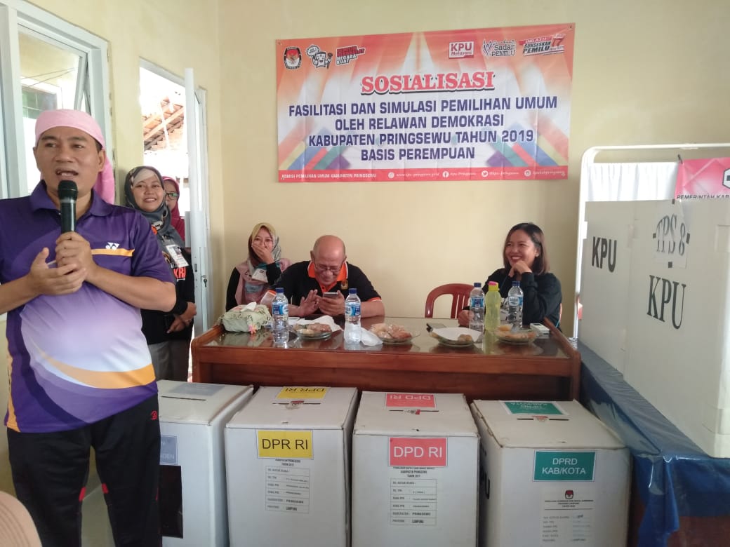 RAKYATNEWS.CO.ID,PRINGSEWU- Basis Perempuan Relawan Demokrasi Kabupaten Pringsewu tahun 2019 gelar simulasi dan fasilitasi pemilihan umum.