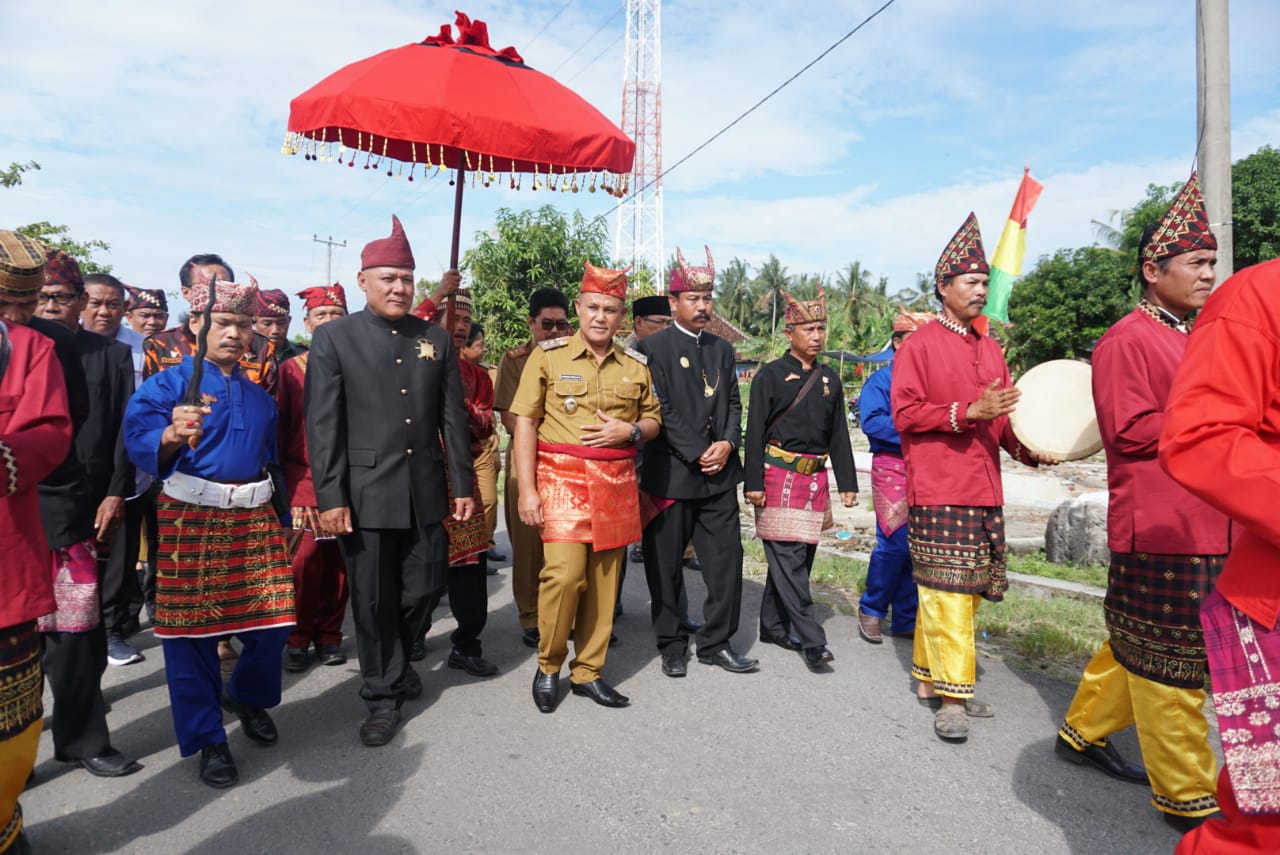 Tiba di lokasi sekitar pukul 08.50 WIB, orang nomor satu di kabupaten Gerbang Sumatera ini disambut Pangeran Penyimbang Agung (Sai Batin Marga Rajabasa) dengan iringan rebana. Kemudian diarak Khudat dan Pincak Lampung menuju tempat acara.