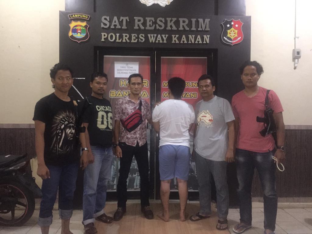 RAKYATNEWS. CO. ID, BLAMBANGANUMPU – Tim Tekab 308 Polres Way Kanan mengamankan seorang lelaki berinisial CU alias Cik Ujang (34) warga Desa Keromongan Kecamatan Martapura Kecamatan Oku Timur di rumah Kontrakan, Selasa (19/03/2019).