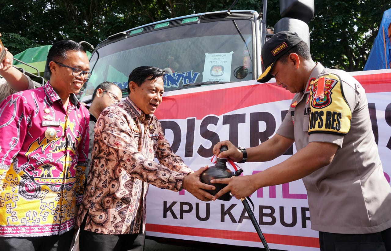 Secara simbolis distribusi dan keberangkatan logistik kesiapan Pemilu 2019 ditandai dengan pemecahan kendi oleh Kapolres Lampung Selatan AKBP M. Syarhan dan Asisten Bidang Pemerintahan dan Kesra Pemerintah Kabupaten (Pemkab) Lampung Selatan Supriyanto.