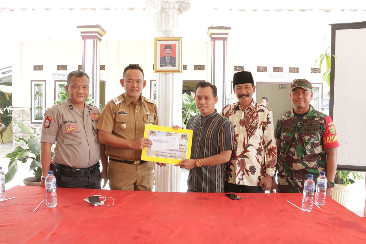 Penyerahan secara simbolis dilakukan oleh wakil bupati Pringsewu kepada ta’mir masjid tersebut pada saat meninjau persiapan dan kesiapan Pemilu 2019 di Balai Pekon Wonodadi, Kecamatan Gadingrejo, Selasa (16/4). Turut menghadiri kegiatan tersebut, Kepala Pekon Wonodadi Priyono, babinsa dan bhabinkamtibmas beserta sejumlah petugas kepolisian dan TNI setempat.