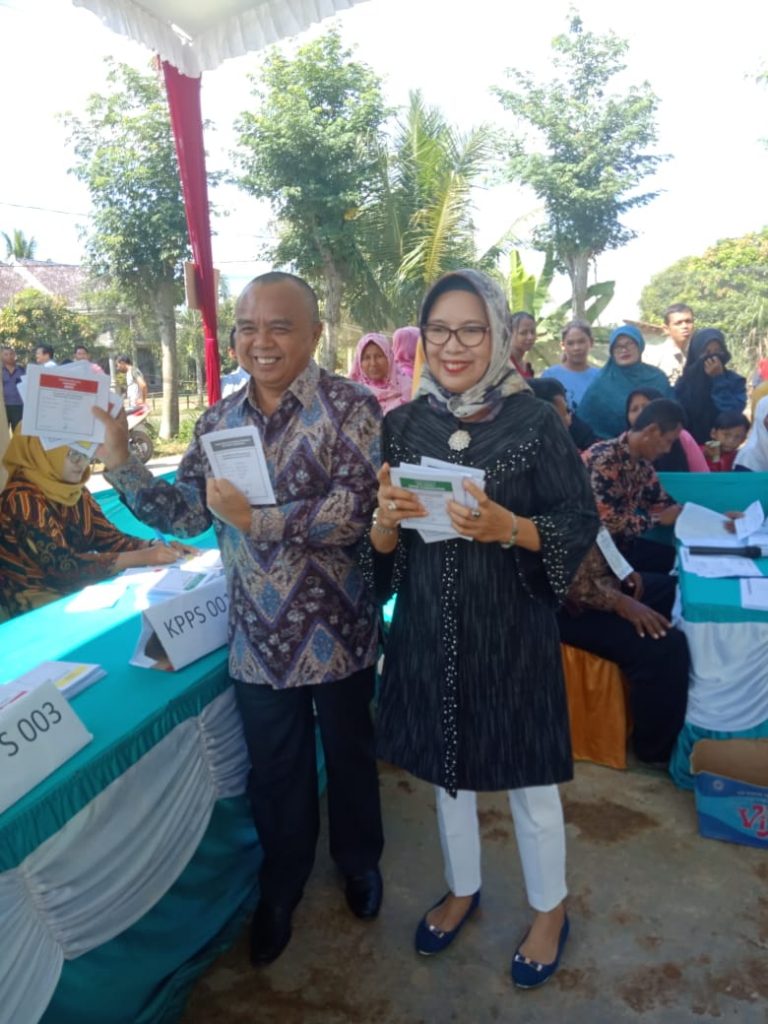 RAKYATNEWS. CO. ID, BLAMBANGANUMPU-Wakil bupati Way Kanan Edward Anthony bersama istri Thurismawati nyoblos menggunakan hak pilihnya di pemilu 2019 ini di TPS 5 kampung Ramsai Kecamatan Way Tuba Kabupaten Way kanan.Rabu (17/4/2019)