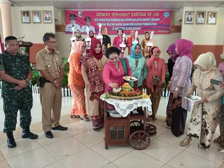 Peringatan hari Kartini yang menjadi momentum tahun ini di gelar di Gedung Serba Guna {GSG} Menggala dengan mengangkat tema “Kit’s Tingkatkan Pemberdayaan Perempuan Untuk Bangkit Bersama Bergerak Melayani Warga Dalam Mewujudkan Pembangunan di Kabupaten Tulang Bawang, ”