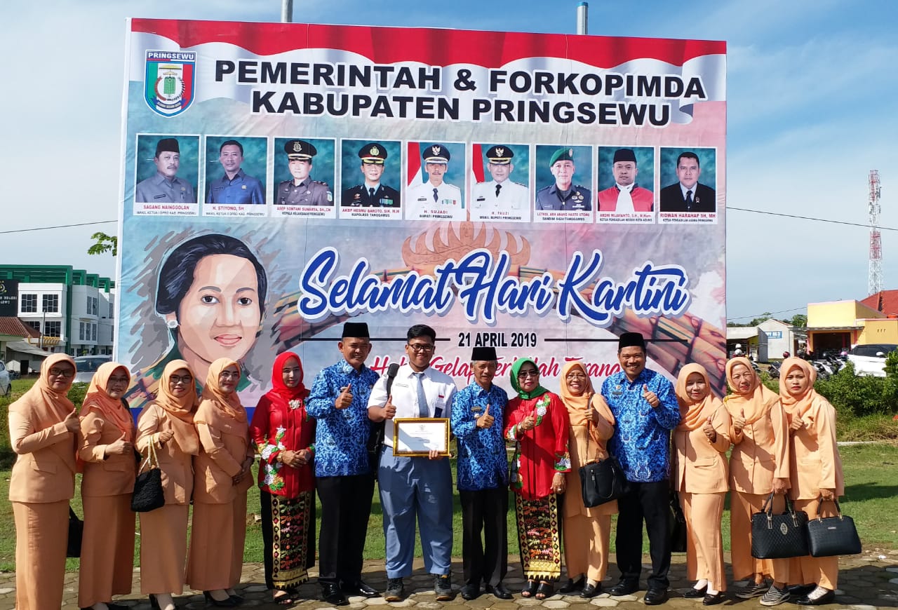 Penyerahan hadiah dan piagam lomba tersebut dilaksanakan pada Upacara Bendera Peringatan Hari Kartini yang ke-140, di Lapangan Pemda Pringsewu, Senin (22/4). Hadir pada acara tersebut Bupati Pringsewu H Sujadi, Wakil Bupati Pringsewu H Fauzi, jajaran MUSPIDA, Sekretaris Daerah, para Assisten, Staf Ahli, Kepala OPD, para Camat, Ketua Tim Penggerak PKK, Ketua Dharma Wanita, dan Aparatur Sipil Negara (ASN) dari seluruh OPD.
