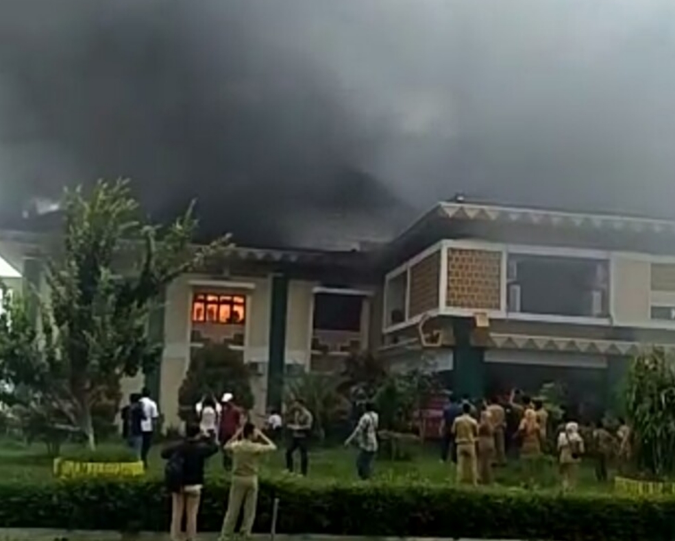 RAKYATNEWS.CO.ID,PRINGSEWU –Kantor Bupati Pringsewu di amuk si jago merah, Selasa (21/05/19) sekira pukul 11.50 Wib. Kondisi terakhir dilokasi hingga saat berita ini ditayangkan, api masih belum dapat dipadamkan dan bahkan api semakin membesar. Dinas Pemadam Kebakaran Pringsewu masih berjibaku memadamkan api, dengan hanya menggunakan 2 unit mobil Damkar
