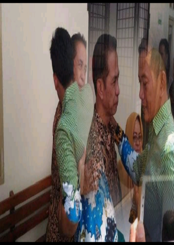 Selepas Khamami menggunakan sepatu usai Shalat Dzuhur, puluhan orang yang mengenakan seragam batik yang didominasi warna hijau biru mendatangi dan mencoba memeluk Bupati non aktif ini.