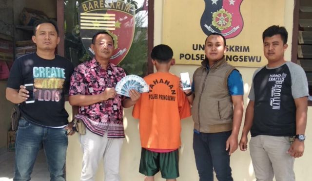 “Dari pembelian handphone tersebut, terungkap sang pembeli menyadari bahwa uang yang diterimanya adalah palsu kemudian melaporkan ke Polsek Pringsewu Kota,” jelasnya.