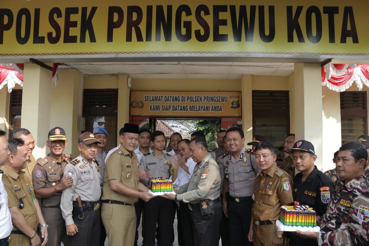 Kedatangan Wabup yang membawa kue tart yang sempat membuat terkejut aparat polisi ini diterima oleh Kapolsek Pringsewu Kota Komisaris Pol. Eko Nugroho dan jajaran, yang langsung diadakan prosesi tiup lilin di teras kantor Mapolsekta.
