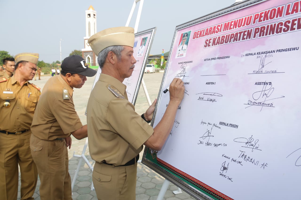 Terkait hal tersebut, dilakukan pendeklarasian menuju Pekon Layak Anak dan Sekolah Ramah Anak se Kabupaten Pringsewu di sela-sela upacara peringatan Hari Anak Nasional (HAN) Tahun 2019 di lapangan Pemkab Pringsewu, Senin (29/7).