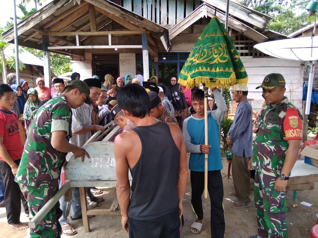 Dikatakan oleh Dansatgas TMMD ke-106 Letkol Kav Adri Nurcahyo ST.M.S.i., sebagai wujud rasa berbelasungkawa kami seluruh anggota Satgas TMMD sebagai insan sosial yang bermasyarakat kepada warga yang meninggal dunia,” Anggota satgas hadir membaur dengan masyarakat dari mulai ikut menyolatkan sampai mengantarkan jenazah almarhum Ibu Masiyam umur 95th ke pemakaman.