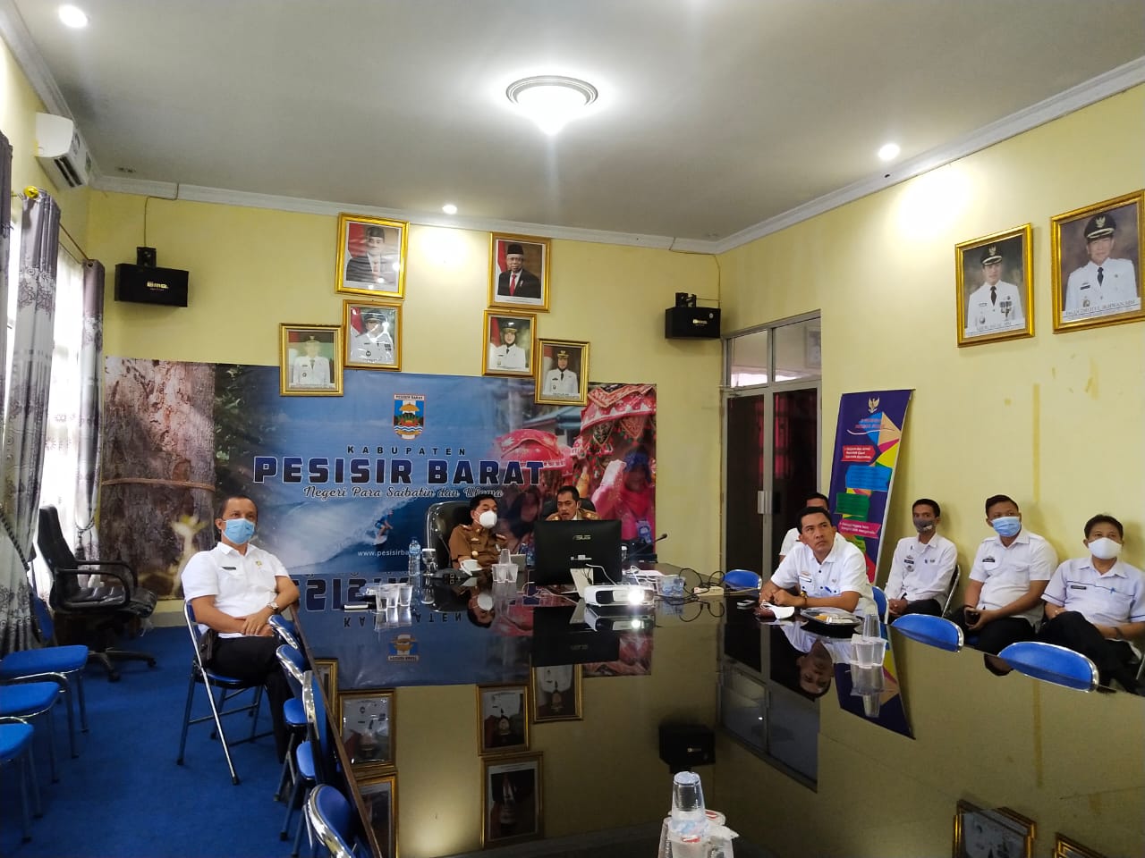 Pjs. Bupati pesisir barat didampingi sekda pesisir barat Ir. N. Lingga Kusuma, MP dan dihadir Kepala BPKAD inyoman setiawan, Kepala Bappeda Zukri Amin menyaksikan langsung melalui video conference oleh Presiden RI ir. Joko Widodo