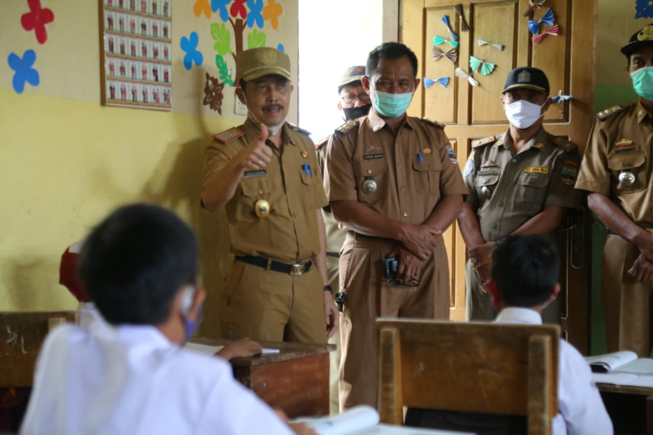 Pesisir Barat-Sekretaris Daerah (Sekda) Pesisir Barat, Lingga Kusuma, Bersama Dinas Pendidikan memantau penerapan protokol kesehatan pencegahan COVID-19 di beberapa sekolah di Kecamatan Pesisir Tengah, Pada Senin (11/01/2021).