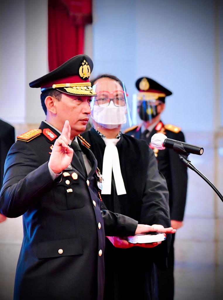 Presiden Joko Widodo pada Rabu, 27 Januari 2021, melantik dan mengambil sumpah jabatan Komisaris Jenderal Polisi Listyo Sigit Prabowo sebagai Kepala Kepolisian Negara Republik Indonesia (Kapolri). Acara pelantikan berlangsung di Istana Negara, Jakarta, dengan menerapkan protokol kesehatan.