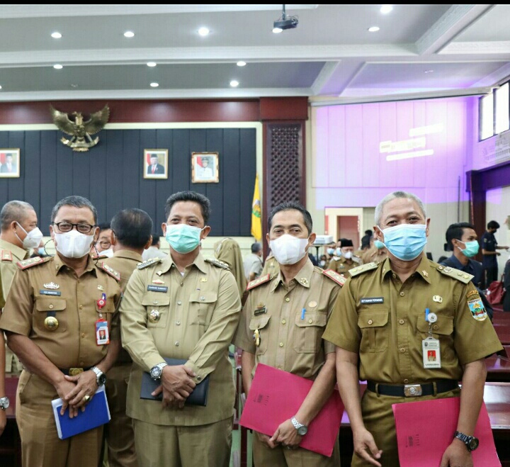 PESIBAR – Pj. Bupati Pesisir Barat Bambang Sumbogo, Menghadiri Rapat Koordinasi Pencegahan Korupsi Terintegrasi, Yang Di Pusatkan, Di Gedung Pusiban, Bandar Lampung Pada Selasa (20 April 2021).