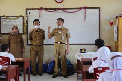 Pesisir Barat- Bupati Pesisir Barat (Pesibar) Agus Istiqlal, Melakukan Monitoring Pelaksanaan Ujian Tingkat Sekolah Dasar (SD) yang di gelar secara serentak, Pada Selasa (25/05/21).