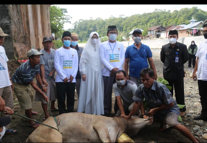 Pesisir Barat- Bupati Pesisir Barat (Pesibar) Menghadiri Penyembelihan Hewan Qurban Baznas Kabupaten Pesisir Barat, Yang Berlangsung Di Pekon Gunung Kemala, Kecamatan Way Krui, Pada Rabu (21/07/21).