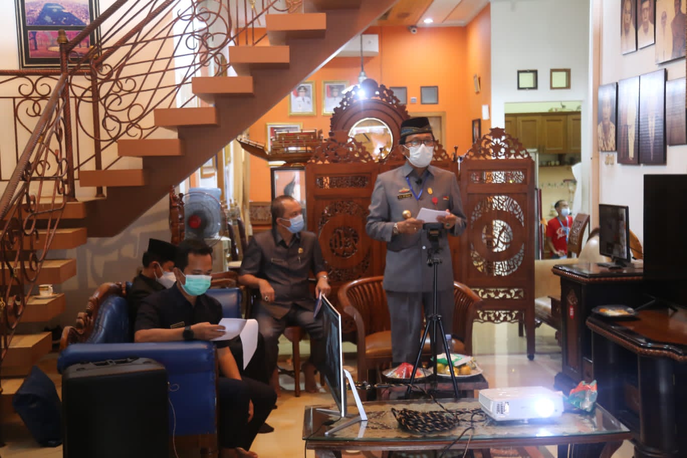 Pesisir Barat- Bupati Pesisir Barat, Agus Istiqlal Menghadiri Rapat Paripurna Penyampaian Nota Pengantar Rancangan Kebijakan Umum Anggaran dan Prioritas Dan Plafon Anggaran Sementara Anggaran Pendapatan Dan Belanja Daerah (KUA & PPS APBD) Kabupaten Pesisir Barat Tahun Anggaran 2022, Melalui Zoom Meeting, Dirumah Dinas Bupati, Pekon Gunung Kemala, Kec.Way Krui, Pada Rabu (21/07/21).