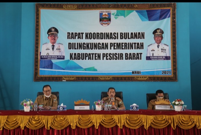 Pesisir Barat – Sekretaris Daerah Kabupaten (Sekdakab) Pesisir Barat (Pesibar) N.Lingga Kusuma, Memimpin Langusng Rapat Koordinasi (RAKOR) Bulanan Dilingkungan Pemerintah Kabupaten Pesisir Barat, Yang Betempat Digedung Serbaguna ( GSG) Selalaw, Kawasan Labuhan Jukung, Pesisir Tengah, Pada Selasa (27/07/21)