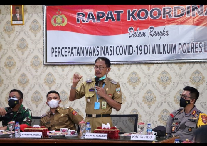Kapolres Lampung Barat AKBP Hadi Saeful Rahman, S.IK membuka secara langsung rapat koordinasi percepatan vaksinasi covid-19 di Kabupaten Lampung Barat dan Pesisir Barat.