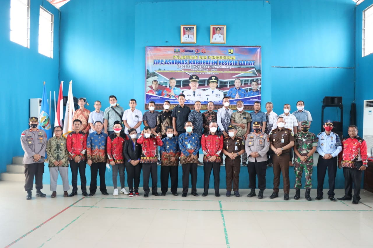 Pesisir Barat- Bupati Pesisir Barat, Agus Istiqlal, Menghadiri Pelantikan Dan Pengukuhan Pengurus DPC Asosiasi Kontraktor Nasional (ASKONAS) Kabupaten Pesisir Barat yang Berlangsung, Di GSG Labuhan Jukung, Pesisir Tengah, Pada Selasa (14/12/21).