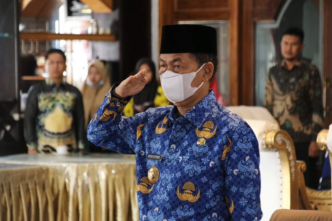 LAMPURA – Bupati Lampung Utara (Lampura), H. Budi Utomo mengikuti Upacara Hari Kebangkitan Nasional (Harkitnas) Ke-114 Tahun 2022 secara virtual di rumah dinasnya, Jum’at (20/5/2022).