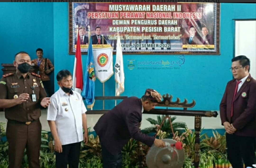 Pesisir Barat – Wakil Bupati Pesisir Barat, A.Zulqoini Syarif, membuka secara resmi Musyawarah Daerah Ke-II Persatuan Perawat Nasional Indonesia (PPNI), Dewan Pengurus Daerah Kabupaten Pesisir Barat dengan tema “Sukses Bermanfaat, Bermartabat” , Yang Berlangsung Di GSG Selalaw, LabuhanJukung, PesisirTengah, Pada (07/12/22).