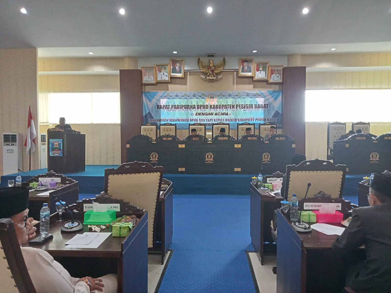 Pesisir Barat- Wakil Bupati Pesisir Barat (Pesibar), Zulqoini Syarif, menghadiri Rapat Paripurna Penyampaian Rekomendasi Dewan Perwakilan Rakyat Daerah (DPRD) terhadap Laporan Keterangan Pertanggungjawaban (LKPJ) Kepala Daerah Kabupaten Pesisir Barat Tahun Anggaran 2022 bertempat di Ruang Rapat Lantai 3 Gedung DPRD Pesisir Barat, Pada Jum’at (28/04/2023).