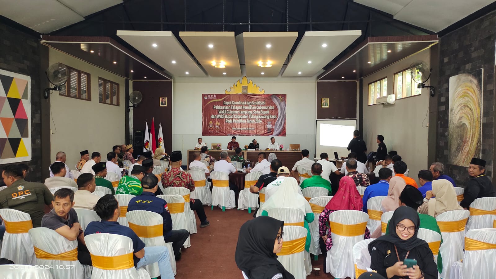 Demikian itu disampaikan Ketua KPU Tubaba Yudi Agusman, saat rapat koordinasi dan sosialisasi pelaksanaan tahapan pemilihan Gubernur dan Wakil Gubernur Lampung, serta Bupati dan Wakil Bupati Kabupaten Tubaba di Wisma Asri Tiyuh (Desa) Tirta Makmur, Kecamatan Tulangbawang Tengah (TBT), Rabu (26/06/2024).