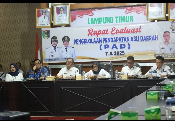 Lampung Timur – Pemerintah Kabupaten Lampung Timur menggelar Rapat Evaluasi Pengelolaan Pendapatan Asli Daerah (PAD) Tahun Anggaran 2025 di Aula Utama Setdakab, Rabu (1/10/2025).