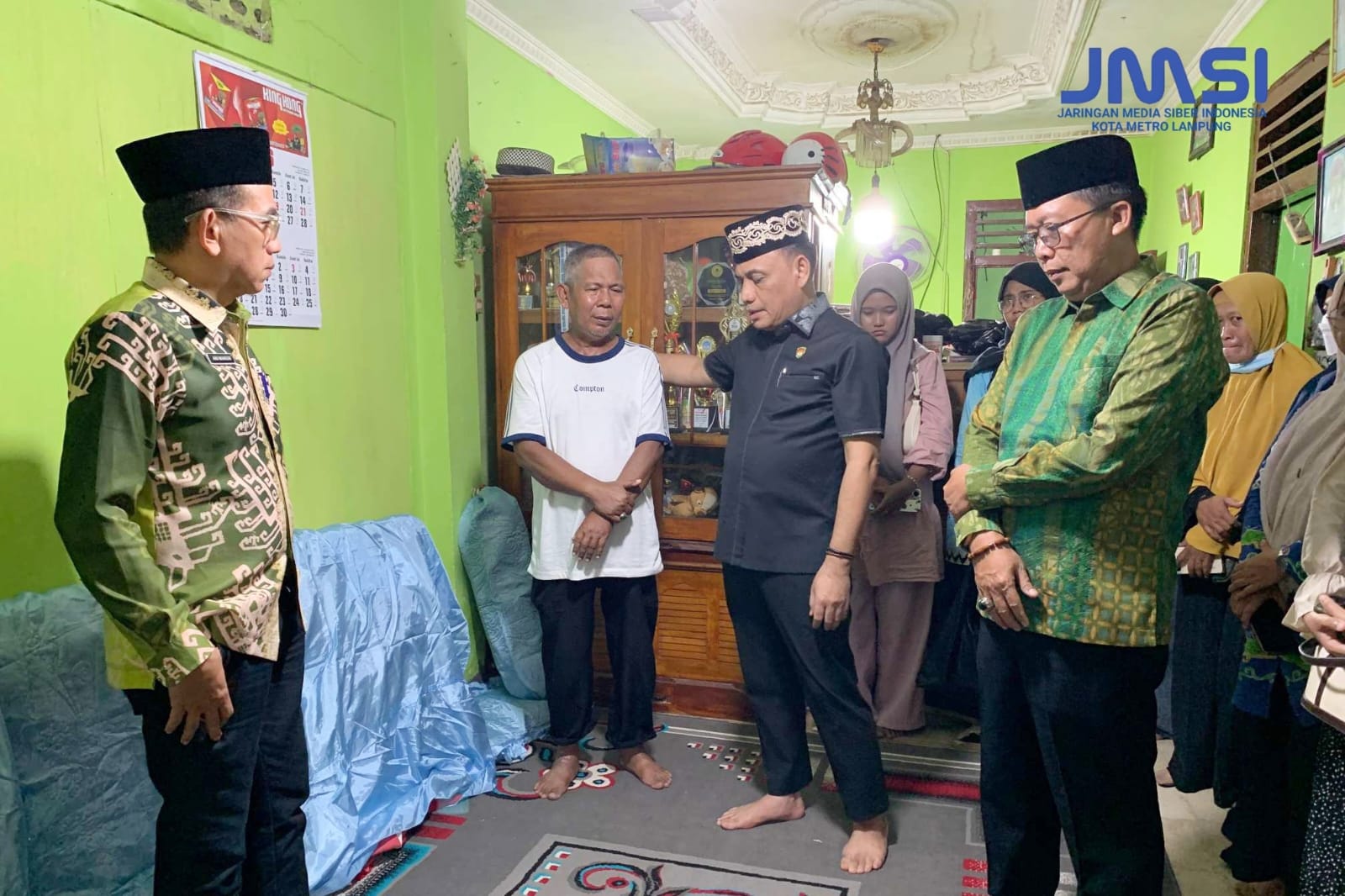 Kota Metro – Wali Kota Metro, Hi. Bambang Iman Santoso bersama Kasubag TU Kantor Kementerian Agama Metro, Deswin Fitra bertakziah ke rumah almarhumah Hafizah Al-Qur’an, Bunga Rosana (23), salah satu korban hanyut di area wisata Wira Garden, Teluk Betung Timur, Bandar Lampung, Kamis (2/4/2026).