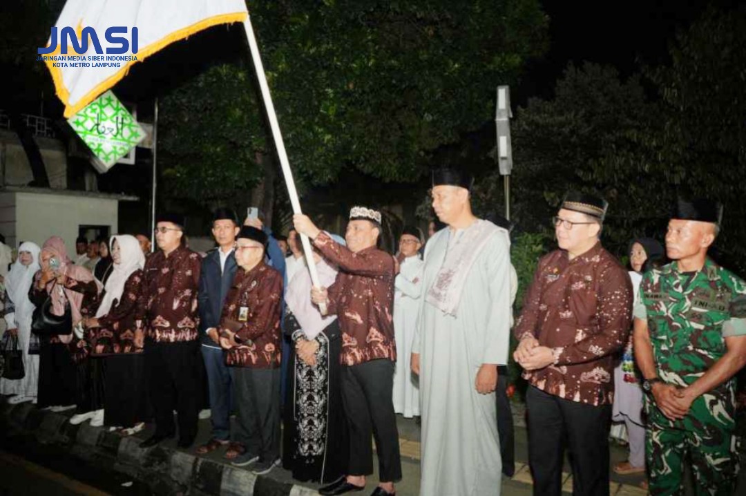 Prosesi pelepasan berlangsung khidmat di Masjid Agung Taqwa Kota Metro dan dipimpin langsung oleh Wali Kota Metro, H. Bambang Iman Santoso.